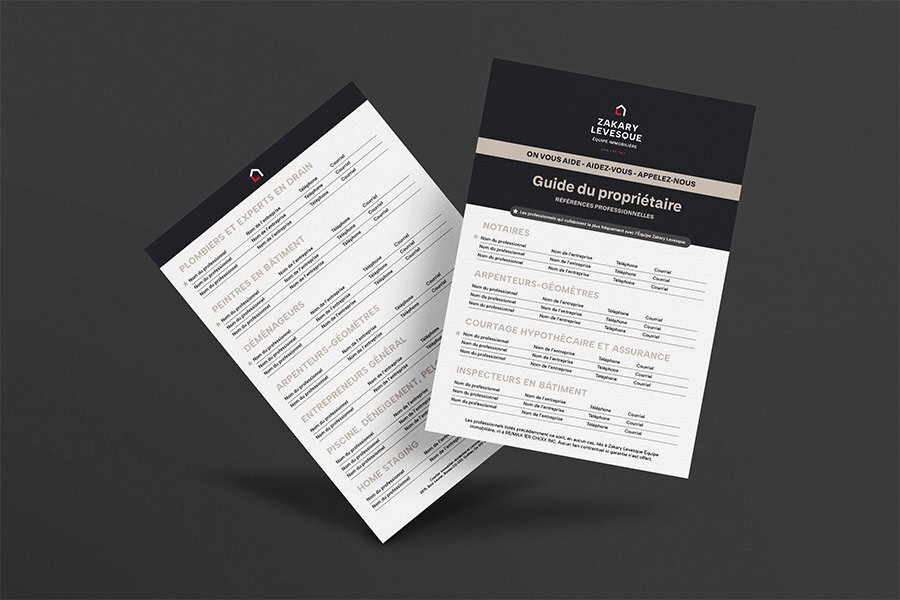 La simplicité et la ressemblance du symbole de la maison dans les deux logos offre l’opportunité de développer des identités complémentaires à celles-ci pour les futurs membres de l’équipe Zakary Levesque. Résultat : une image de marque qui résistera au temps et aux changements.